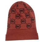 Nwt Authentic Michael Kors Knit 2 Pieces Set Hat Scarf Mk Print Mocha/white