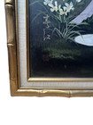 Vintage Mid Century Painting Japanese Geisha In Garden Signed Faux Bamboo Frame