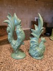Vintage Green Chalkware Rooster Figurines Pair Farmhouse Decor Mid Century Mcm