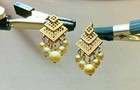 Vintage 14k Gold Geometric Pearl Drop Earrings 7.83g Mid Century Modern