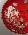 Vintage Silver City Ruby Red Footed Plate With Silver Overlay Pristine 7"