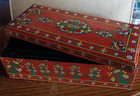 Vintage Mid Century Red Floral Hand Painted Wooden Box