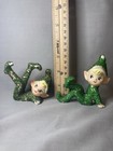 2 Vintage Lefton Ceramic Sitting Green Elf Pixie Figurines Elves 50’s
