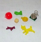 Vtg Miniature Dollhouse Lot Plastic Cracker Jack Toy Charm Dice Lamb Dog Foot
