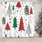 Christmas Shower Curtain Set With Rugs, 4 Pcs Christmas Tree Style Bathroom S...