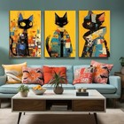 3pcs Canvas Wall Art Black Cat Wall Decor Modern Art Home Decor
