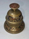 Vintage Indian Claw Temple Bell Ornate Solid Brass Red Blue 3 Inch W / Stand