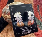 Native American Allen Barney Handmade Wild Horse Inlaid Feather Earrings Stamped