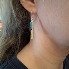 Allen Barney Navajo Sterling Silver Multi Stone Inlay Bar Drop Earrings