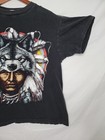 Vintage Wolf Native American Chief Shirt Mens Large Black Double Sided 90s