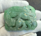 Wonderful Early Vintage Chinese Hand Carved Natural Green Jade Pendant Of Dragon