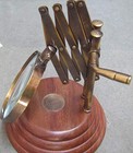 Nautical Antique Brass Magnifying Glass Adjustable Magnifier In Wooden Base Desk