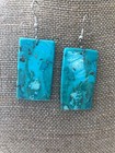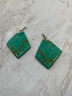 Native American Sterling Silver Square Slab Green Turquoise Dangle Earrings