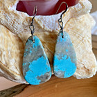 Native American Jewelry Compressed Slab Mohave Turquoise Dangle Earrings