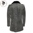 Men's Military Look Royal Button Vintage Genuine Leather Pea Coat Jacket