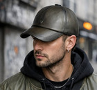 Men's Military Green Vintage Real Lambskin Leather Baseball Dad Cap
