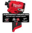 Milwaukee 3450-20 M12 12 Volt 1/4" Hex Subcompact Brushless Hex Impact Driver
