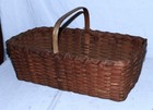 Vintage New England Country Wood Splint Basket W/ Wood Handle