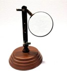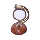 Nautical Antique Brass Magnifying Glass Adjustable Magnifier In Wooden Base Desk
