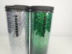 New Starbucks 2019 Holiday Silver And Green Glitter Tumbler Set Two 16 Oz