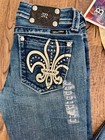 Miss Me Jeans 29x32 Fleur De Lis Embellished Mid Rise Straight Stretch New Style