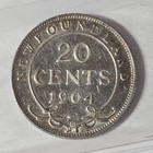 **rare Low Mint** 1904 Newfoundland 20 Cents F/vf Cleaned Km#10 92.5% Silver