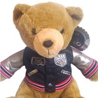 Fao Schwarz Teddy Bear Plush Varsity Jacket 12" Stuffed Animal Toy Brown Black