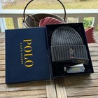 Polo Ralph Lauren Men’s Big Pony 2 Piece Hat And Scarf Set Gray/navy Nwt
