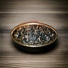 Antique Oval Brass "pill" Box W/ "rennaisance" Story Design 2.25"-1.25"-.75"