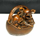 Japanese Netsuke Old Vintage Boxwood Collectible Basket & Pair Happy Pigs Statue