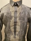 Barong Tagalog Men L Organza Gray Embroidery Accent Double Lining.