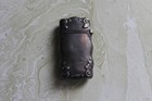 Antique Gun Metal & Sterling Silver Overlay Decorated Match Safe & Sapphire