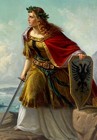 Lorenz Clasen Oil Painting German Woman Warrior Rhine River Coat Of Arms 19th C.