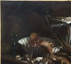 Large Original Antique Oil Canvas Painting Still Life, 19th Century