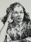 Antique 1970s Pen Ink Portrait Drawing Black Woman Charles W Yeiser Ooak 14 X 10