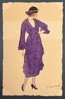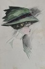 Antique Original Drawing Painting Pen Ink Watercolor Portrait Gibson Girl 1919