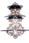 Antique Asian Cast Ornate Bronze Metal 3 Tier Wood Wall Shelf 24" Tall *q