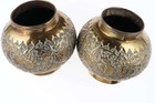 Pr Antique Asian Brass Vases With Ornate Repousse Work