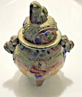 Antique Royal Satsuma Asian Jewelry Box Porcelain Gold Embossed Floral Ornate