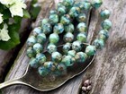 6x8mm Blended Turquoise Aqua Picasso Czech Glass Oval Cathedral Beads - 15 Beads