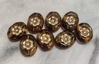 Eight Oval 14x11mm Czech Glass Beads In Translucent Brown With Gold Accent