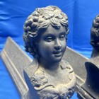 Antique Pair Cast Metal French Lady Female Bust Fireplace Andirons Log Holder