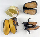 Antique Doll Shoe Lot Black Off White Soft Leather White Shoes