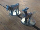Pair Of Antique Silver Plated Figure Cow And Deer Menu Cheese Label Marker