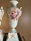 Antique Pair Of French Rococo Style Lamps Hand Painted Floral Birds Mid Century