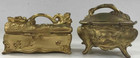 Pair Of Art Nouveau Floral Rose Trinket Boxes Antique Gold Metal