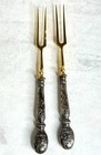 Pair Of Antique 800 Silver & Brass Small Meat Serving Forks