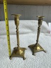 Pair Of Antique Solid Brass Ornate Lions Footed Candle Holder