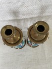 Pair Of Antique Longwy French Brass & Enamel Cloisonné 9.5" Candlesticks