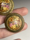 Pair Of Antique Fragonard Limoges Porcelain Brass Victorian Drawer Handle Pulls